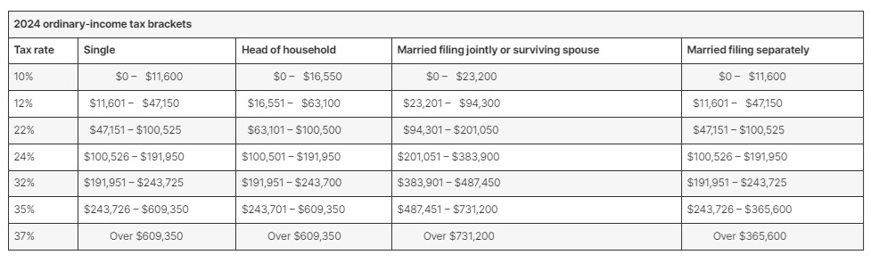 Tax-bracket thresholds increase for each filing status but, because they’re based on percentages, they increase more significantly for the higher brackets. For example, the top of the 10% bracket will increase by $600–$1,200, depending on filing status, but the top of the 35% bracket will increase by $18,725–$37,450, again depending on filing status.