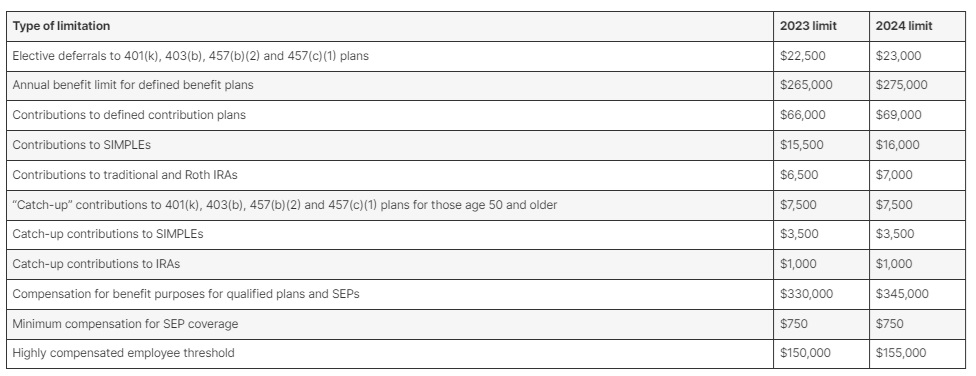 Nearly all retirement-plan-related limits will increase for 2024. Thus, depending on the type of plan you have, you may have limited opportunities to increase your retirement savings if you’ve already been contributing the maximum amount allowed: